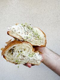 Melted swiss, brie, cheddar cheese OR feta, topped with lettuce, tomato & alfalfa sprouts, seasoned with our own mustard & special herb butter
